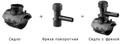 Фреза поворотна (патрубок відвідної з фрезою) - призначена при використанні сідла в трубопроводах під тиском і служить для врізки в трубу. Відгалуження від поворотних фрез мають діаметр від 20 мм до 63 мм. Фреза має всередині металевий ніж, який рухається по різьбі і приводиться в дію за допомогою шестигранного ключа. Верхня частина поворотної фрези має кришку з наполегливою різьбленням і гумовим кільцем. Вона легко закручується руками. У комплекті всю цю конструкцію називають "селом з фрезою" або "сідлом для врізки під тиском" .Якщо трубопровід не дійовий, то замість поворотною фрези можна використовувати Спігот з виходом від 25 мм до 63 мм. Також замість поворотною фрези і Спігот можливе використання інших деталей, а також безпосередньо приварювати труби діаметром 63мм.